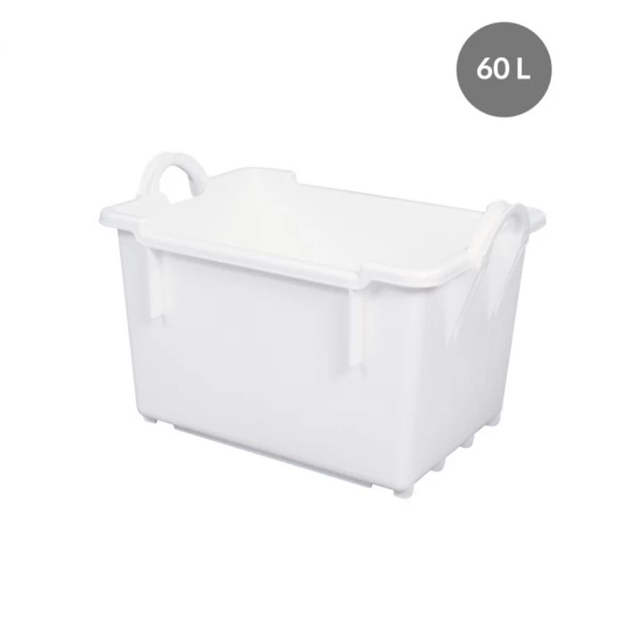 Bac Sans Couvercle Blanc Plastique 64×44,5×43,5 Cm 60 L Fond Plein Parois Pleines Gilac