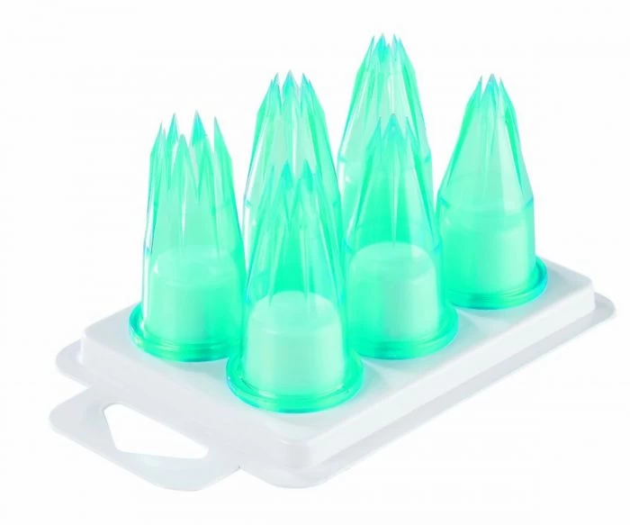 Cône parfaitement lisse à l’intérieur pour favoriser le passage de la crème et faciliter le nettoyage. Couleur bleue pour la repérer facilement dans la crème ou dans la plonge. Longueur de 6 cm, plus facile à se positionner dans la poche et offrant une meilleure visibilité en sortie de poche. Dentelure renforcée par des nervures extérieures pour un travail plus précis et une meilleure coupe de la crème. Composition : c8, d8, e8, f8, c6 et d6