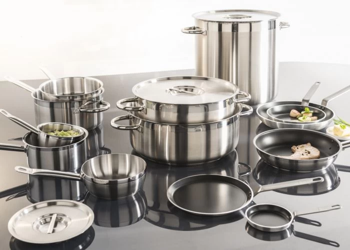 En acier inoxydable offrant une excellente résistance à la corrosion et aux acides alimentaires. Fond capsulé (inox – aluminium – inox ) permet une diffusion optimale de la chaleur. Finition intérieure et extérieure poli satinée, avec une collerette poli miroir. L’intérieur de chaque pièce est jaugée pour une meilleure précision. Bord verseur. Queues athermiques en tube inox (casseroles et sauteuses) et montures (braisières, marmites et faitouts) en inox soudées très résistantes. Couvercles empilableset faciles à ranger. Entretien aisé grâce aux angles arrondis. Tests et essais réalisés en laboratoires et conformes à la norme NF EN12983-1.