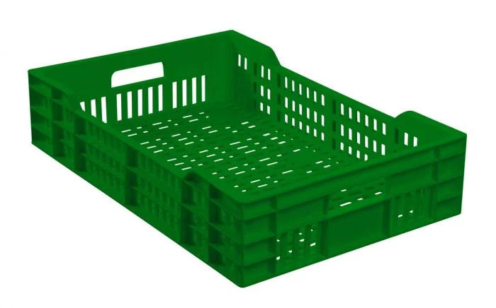 Caisse Ajourée Recyclée Vert Plastique 60x40x13,5 Cm 25 L Fond Ajouré Parois Ajourées Gilac