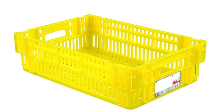 Caisse Ajourée Sans Couvercle Jaune Plastique 60x40x14,6 Cm 27 L Fond Ajouré Parois Ajourées Gilac