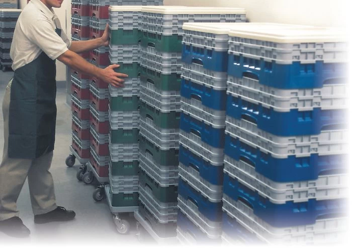 Solution de lavage, de transport et de stockage pour tout type de verre: LAVAGE EFFICAFE : Les compartiments internes ouverts permettent la circulation complète de l’eau et des solutions de nettoyage et favorisent le séchage rapide et à fond. Les casiers sont en polypropylène, un matériau résistant aux produits chimiques et à des températures élévées, jusqu’à 93°C. ENTEPOSAGE HYGIENIQUE : Des parois externes pleines évitent de laisser des empreintes de doigts sur les verres, empêchent les contaminants de pénétrer et limitent le risque de casse et de coupure. Grâce au couvercle et au chariot CAMDOLLY, ce système est entièrement fermé. Les verres entreposés restent propres, un seul lavage suffit. MEILLEURE GESTION DES STOCKS : Les diverses couleurs de casiers aident à reconnaître d’un coup d’oeil le contenu et la quantité par casier. TRANSPOT SUR ET HYGIENIQUE : Les casiers peuvent être transportés sur de longues distances au sein du même établissement mais également hors site en une seule unité. Les poignées faciles à sisir et les côtés lisses se chevauchant permettent un transport sûr.