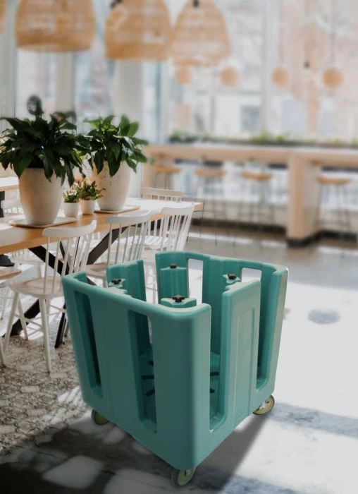 Le chariot porte-assiettes maintient la vaisselle en toute sécurité à partir du sol, avec un dégagement de 18 cm sous l’unité.