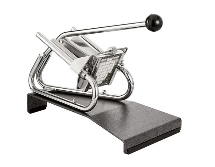 Coupes-frites en inox très efficace avec un débit 4 à 5 kg / heure. Robuste : sur socle lourd et stabilisateur. Livré prêt-à-l emploi avec couteau et poussoir 8 mm.