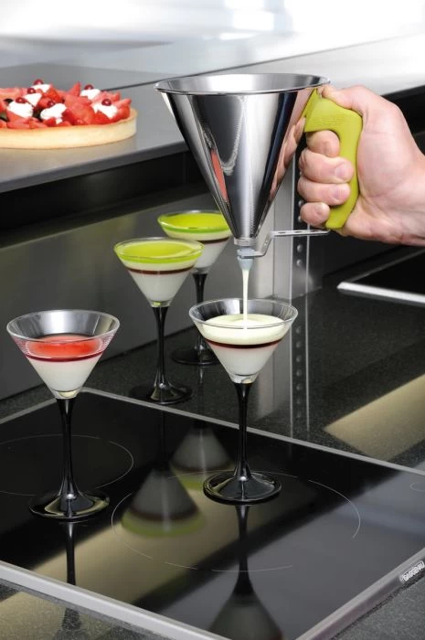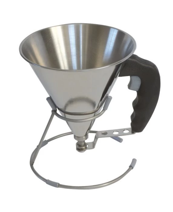 Ce mini entonnoir possède un débit de 7 mm et est parfaitement étanche. Support en fil inox et revêtement silicone pour une stabilité parfaite. Faible encombrement, entièrement démontable pour un nettoyage complet. Corps en inox et poignée en plastique.