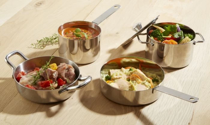 Une gamme tout en inox. Idéale pour la présentation des accompagnements.