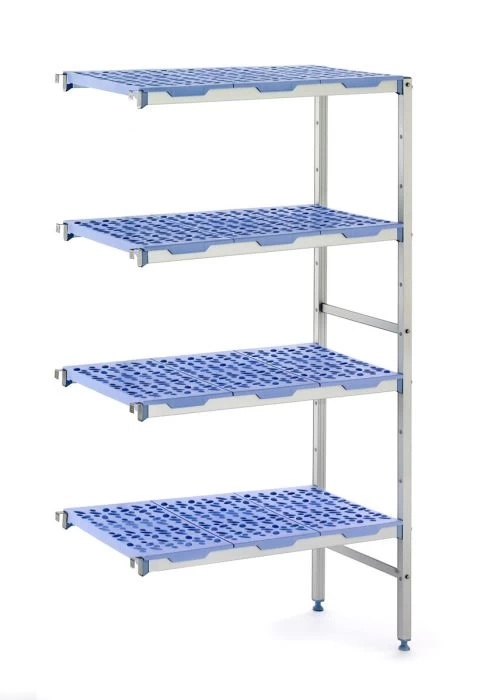 Les rayonnages sont constitués d étagères en polypropylène haute densité et d échelles en aluminium anodisé. Robustesse : montants en tube aluminium anodisé 32 x 30 mm. Facilité de montage : par emboîtement conique autobloquant. Exclusivité Tournus : marquage direct à la main sur le bord de la clayette, avec un feutre à encre effaçable, aide à la gestion du stock de denrées alimentaires. Modularité : montage en ligne ou en angle. Accessibilité maximale : le crochet d’angle permet de supprimer l’échelle et de stocker les produits y compris dans les angles. Résistance à la charge : 150 kg répartis par niveau. Facilité de nettoyage : clayettes amovibles lavables en machine jusqu’à 90°C. Stabilité : vérins réglables sans filetage apparent.