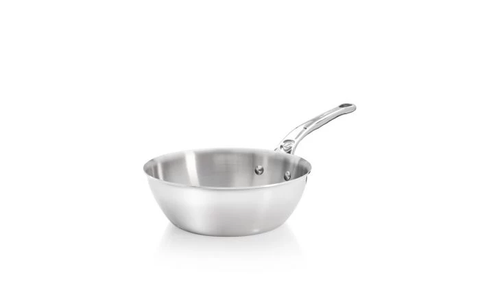 Ustensile indéformable en matériau multicouche : alliance d’aciers inoxydables à l’extérieur et d’aluminiums à l’intérieur. Matériau hyper réactif : montée très rapide en température et arrêt instantané de la cuisson hors du feu. Diffusion uniforme de la chaleur sur toute la jupe et circuit de chauffe parfait : cuisson homogène. Idéal pour la cuisine de réduction, les sauces. Queue fonte d’inox rivetée : ergonomique pour une préhension confortable. Queue garantie basse température. Gamme travaillée, design moderne et élégant. Polissage miroir haut de gamme. Conseil : montée en température progressive. Hygiénique : passe au lave-vaisselle. Polissage extérieur occasionnel avec de la pâte à polir pour restaurer l’éclat d’origine. Tous feux dont induction.